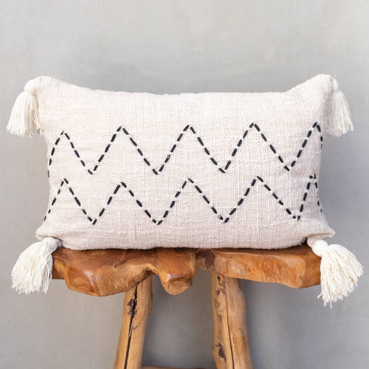 Poduszka Boho / Pokrowiec na poduszkę | Kremowy ZigZag z frędzlami