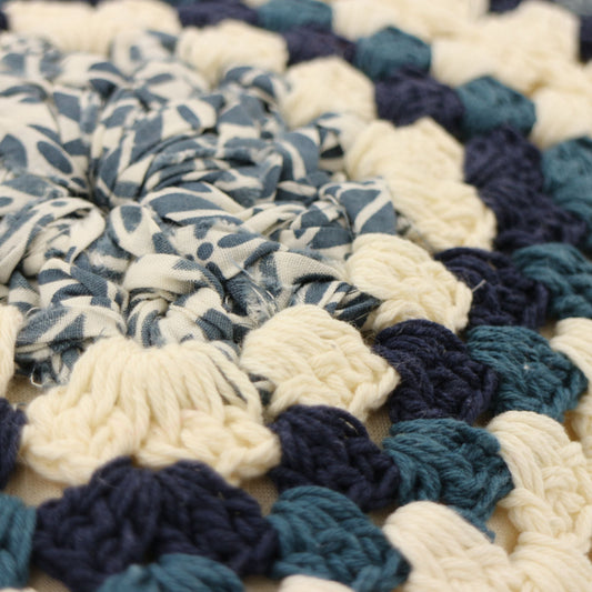Poduszka w stylu boho z kwadratowym szydełkowym pokrowcem w kolorze indygo