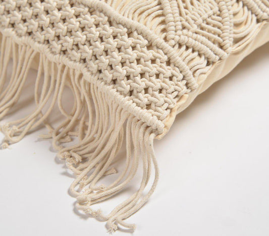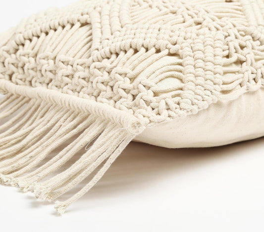 Poduszka w kształcie kwadratu z frędzlami makramowymi | Linia Diamentowa