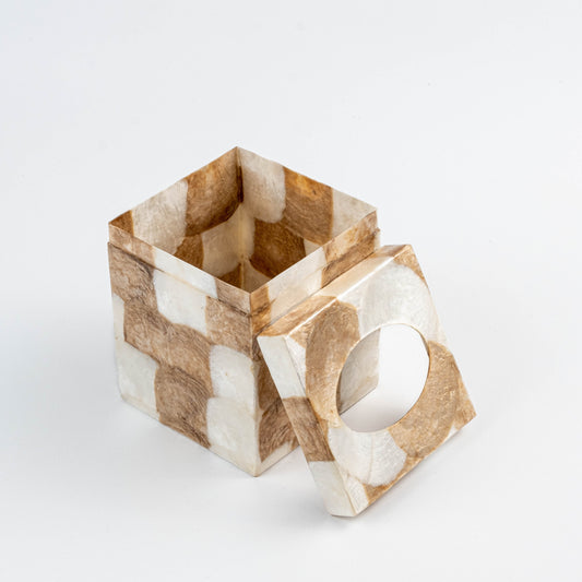 Capiz Pojemnik na Chusteczki | Kwadratowy - Biały/Złoty