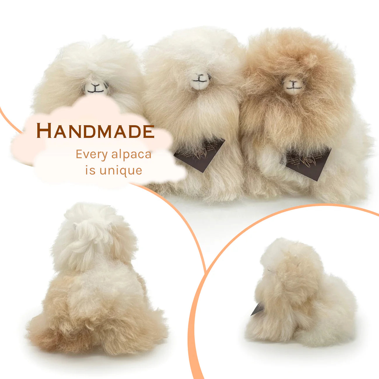 Biorąc pod uwagę unikalne odcienie wełny alpaki oraz ręczny proces produkcji, każda pluszowa zabawka z alpaki jest wyjątkowa, z drobnymi różnicami w kolorze, kształcie i rozmiarze.