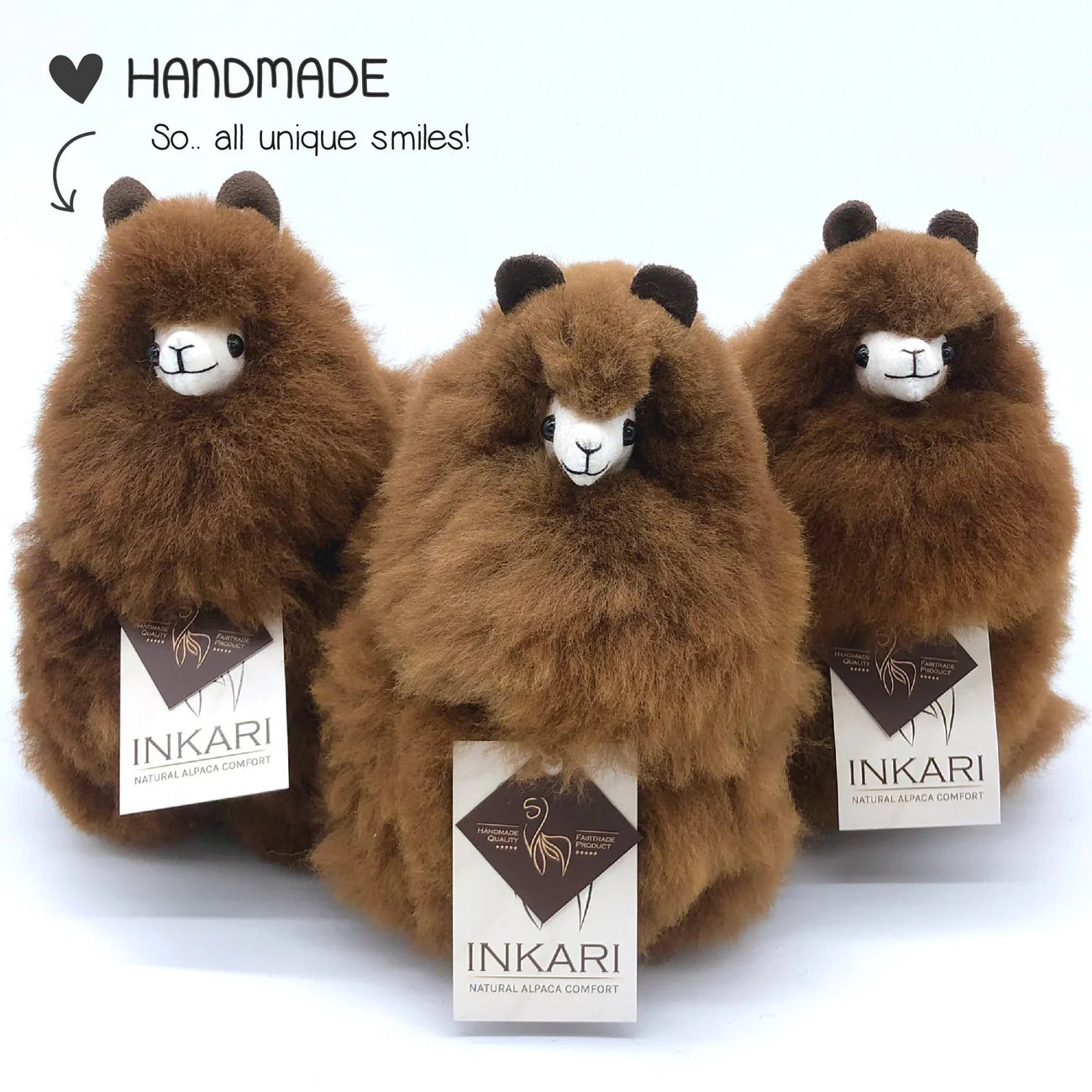 Biorąc pod uwagę unikalne odcienie wełny alpaki oraz ręczny proces produkcji, każda pluszowa zabawka z alpaki jest wyjątkowa, z drobnymi różnicami w kolorze, kształcie i rozmiarze.