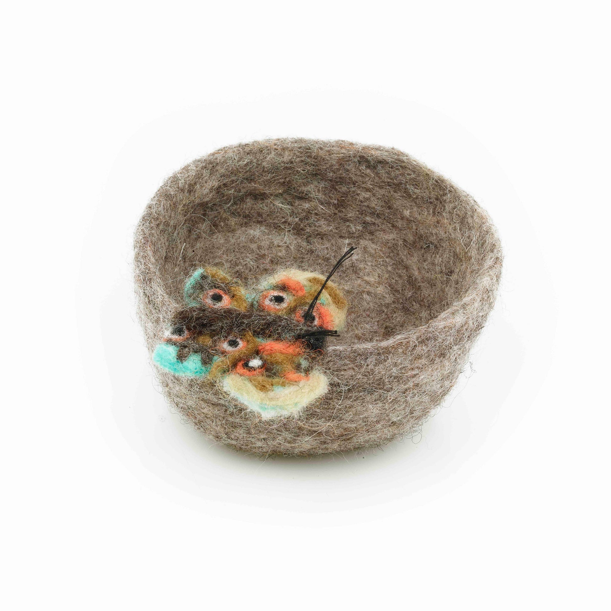 Head down to the bottom of the garden, and you'll be sure to find these minibeasts lurking! These fabulous wet felt trinket dishes each come adorned with their own beautiful needle felted critter - nothing creepy about these crawlies!